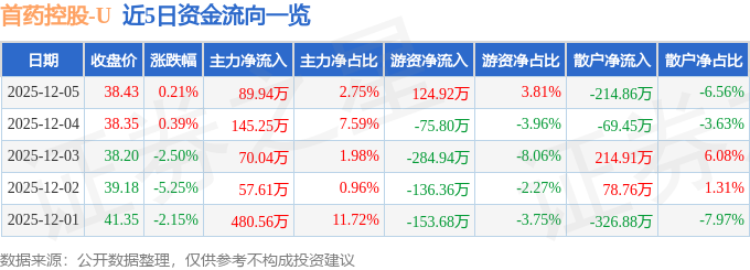 证券之星消息,截至2025年12月5日收盘,首药控股(688197)报收于38.43元,上涨0.21%,换手率1.35%,成交量8670.0手,成交额3274.85万元。