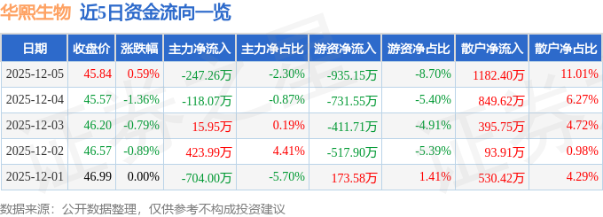 证券之星消息,截至2025年12月5日收盘,华熙生物(688363)报收于45.84元,上涨0.59%,换手率0.49%,成交量2.36万手,成交额1.07亿元。