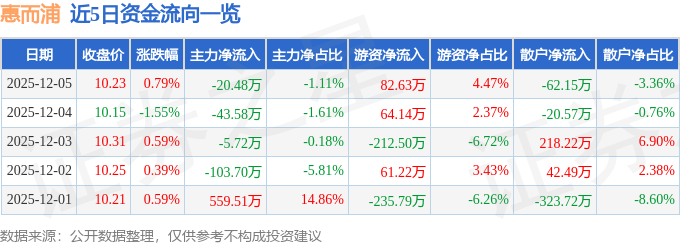 证券之星消息,截至2025年12月5日收盘,惠而浦(600983)报收于10.23元,上涨0.79%,换手率0.24%,成交量1.82万手,成交额1847.86万元。