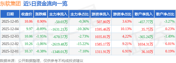 证券之星消息,截至2025年12月5日收盘,东软集团(600718)报收于10.06元,上涨0.9%,换手率1.18%,成交量14.04万手,成交额1.4亿元。