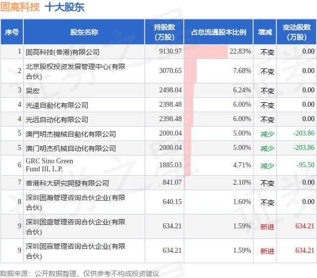根据固高科技2025年三季报公布的十大股东详情如下: