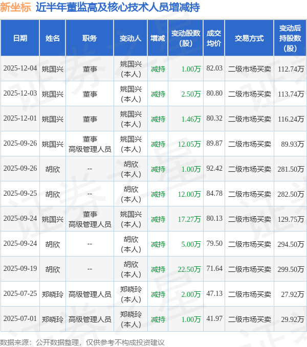 新坐标近半年内的董监高及核心技术人员增减持详情如下: