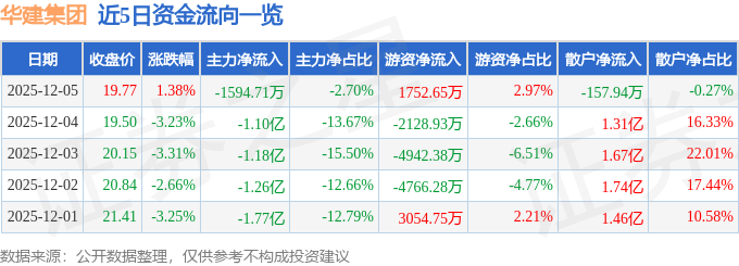 证券之星消息,截至2025年12月5日收盘,华建集团(600629)报收于19.77元,上涨1.38%,换手率3.16%,成交量30.11万手,成交额5.9亿元。