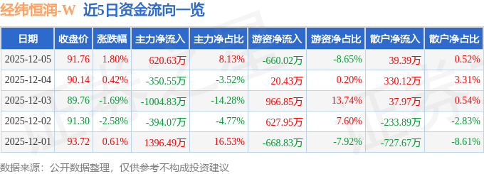 12月5日的资金流向数据方面,主力资金净流入620.63万元,占总成交额8.13%,游资资金净流出660.02万元,占总成交额8.65%,散户资金净流入39.39万元,占总成交额0.52%。