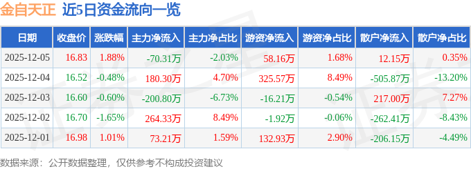 12月5日的资金流向数据方面,主力资金净流出70.31万元,占总成交额2.03%,游资资金净流入58.16万元,占总成交额1.68%,散户资金净流入12.15万元,占总成交额0.35%。