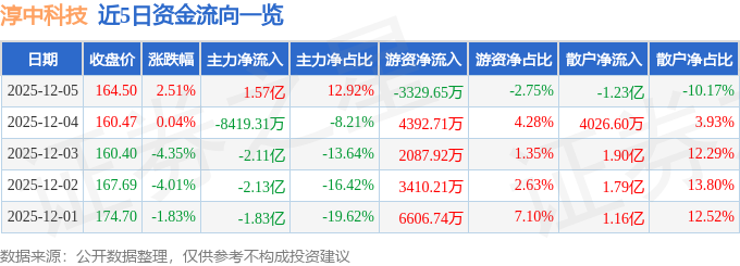 证券之星消息,截至2025年12月5日收盘,淳中科技(603516)报收于164.5元,上涨2.51%,换手率3.61%,成交量7.34万手,成交额12.13亿元。