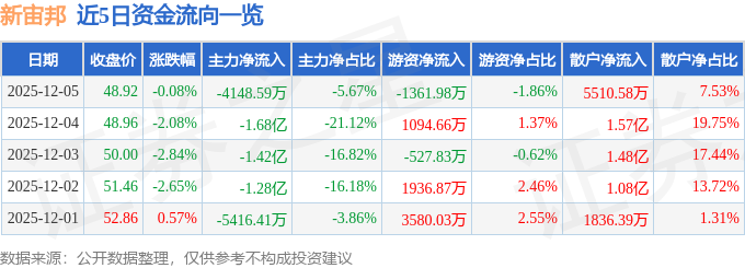 12月5日的资金流向数据方面,主力资金净流出4148.59万元,占总成交额5.67%,游资资金净流出1361.98万元,占总成交额1.86%,散户资金净流入5510.58万元,占总成交额7.53%。