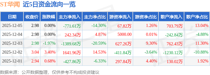 证券之星消息,截至2025年12月5日收盘,ST华闻(000793)报收于2.98元,上涨0.0%,换手率0.93%,成交量18.19万手,成交额5395.34万元。