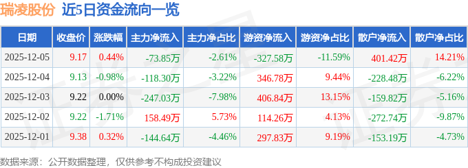 证券之星消息,截至2025年12月5日收盘,瑞凌股份(300154)报收于9.17元,上涨0.44%,换手率0.98%,成交量3.09万手,成交额2825.89万元。