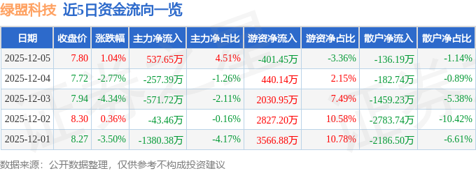 12月5日的资金流向数据方面,主力资金净流入537.65万元,占总成交额4.51%,游资资金净流出401.45万元,占总成交额3.36%,散户资金净流出136.19万元,占总成交额1.14%。