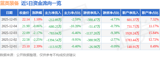 证券之星消息,截至2025年12月5日收盘,蓝英装备(300293)报收于22.14元,上涨1.1%,换手率1.33%,成交量3.74万手,成交额8214.28万元。