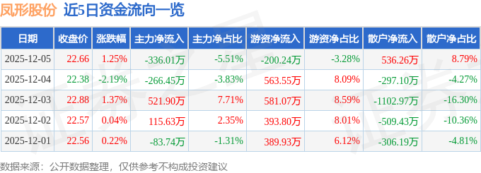 证券之星消息,截至2025年12月5日收盘,凤形股份(002760)报收于22.66元,上涨1.25%,换手率2.51%,成交量2.71万手,成交额6102.39万元。