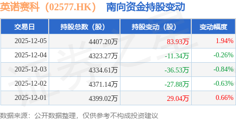 证券之星消息,12月5日南向资金增持83.93万股英诺赛科(02577.HK)。近5个交易日中,获南向资金增持的有2天,累计净增持37.22万股。近20个交易日中,获南向资金增持的有8天,累计净增持39.54万股。截至目前,南向资金持有英诺赛科(02577.HK)4407.2万股,占公司已发行普通股的8.38%。
