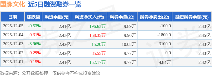 国脉文化融资融券信息显示,融资方面,当日融资买入684.16万元,融资偿还880.79万元,融资净偿还196.63万元。融券方面,融券卖出1000.0股,融券偿还1100.0股,融券余量9.89万股,融券余额129.16万元。融资融券余额2.43亿元。