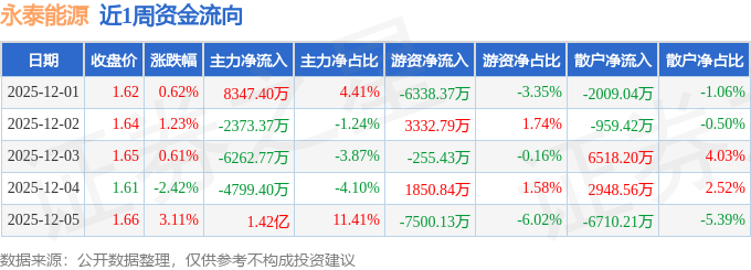 沪深股通持股方面,截止2025年12月5日收盘,永泰能源沪股通持股数为2.12亿股,占流通股比为96.0%。