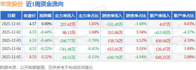 资金流向数据方面,本周华发股份主力资金合计净流出1023.25万元,游资资金合计净流入218.41万元,散户资金合计净流入804.83万元。本周资金流向一览见下表: