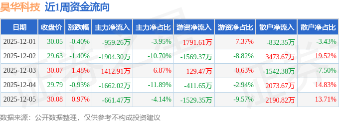 资金流向数据方面,本周昊华科技主力资金合计净流出3774.14万元,游资资金合计净流出1589.29万元,散户资金合计净流入5363.43万元。本周资金流向一览见下表:
