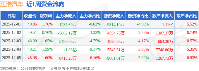 沪深股通持股方面,截止2025年12月5日收盘,江淮汽车沪股通持股数为7601.9万股,占流通股比为348.0%。