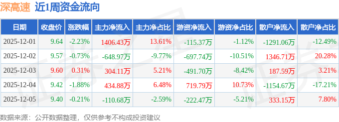 资金流向数据方面,本周深高速主力资金合计净流入1385.75万元,游资资金合计净流出807.48万元,散户资金合计净流出578.27万元。本周资金流向一览见下表: