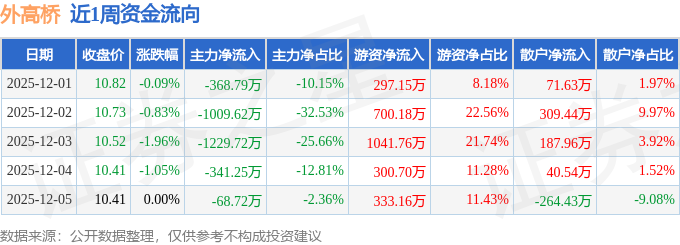 资金流向数据方面,本周外高桥主力资金合计净流出3018.09万元,游资资金合计净流入2672.95万元,散户资金合计净流入345.14万元。本周资金流向一览见下表: