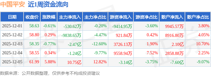 沪深股通持股方面,截止2025年12月5日收盘,中国平安沪股通持股数为5.89亿股,占流通股比为547.0%。