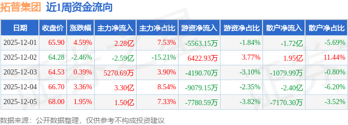 资金流向数据方面,本周拓普集团主力资金合计净流入5.01亿元,游资资金合计净流出2.02亿元,散户资金合计净流出2.99亿元。本周资金流向一览见下表: