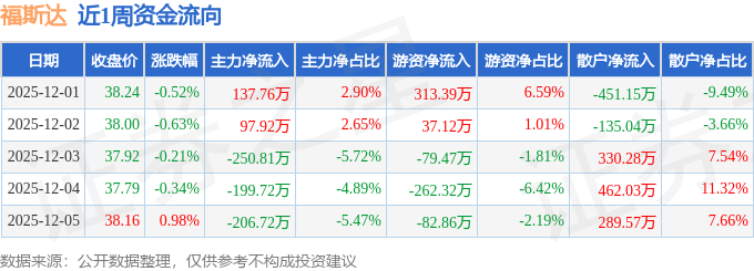 资金流向数据方面,本周福斯达主力资金合计净流出421.57万元,游资资金合计净流出74.14万元,散户资金合计净流入495.71万元。本周资金流向一览见下表: