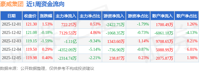资金流向数据方面,本周豪威集团主力资金合计净流出9867.29万元,游资资金合计净流出2645.52万元,散户资金合计净流入1.25亿元。本周资金流向一览见下表: