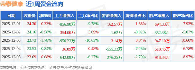 资金流向数据方面,本周荣泰健康主力资金合计净流出2058.33万元,游资资金合计净流出667.5万元,散户资金合计净流入2725.84万元。本周资金流向一览见下表: