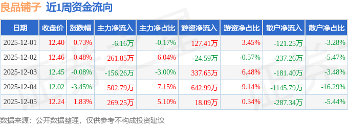 资金流向数据方面,本周良品铺子主力资金合计净流入871.48万元,游资资金合计净流入1101.55万元,散户资金合计净流出1973.03万元。本周资金流向一览见下表: