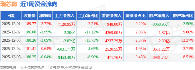 资金流向数据方面,本周瑞芯微主力资金合计净流出5.95亿元,游资资金合计净流入1.24亿元,散户资金合计净流入4.71亿元。本周资金流向一览见下表: