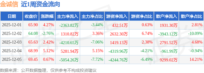 资金流向数据方面,本周金诚信主力资金合计净流出5035.97万元,游资资金合计净流出4080.78万元,散户资金合计净流入9116.74万元。本周资金流向一览见下表: