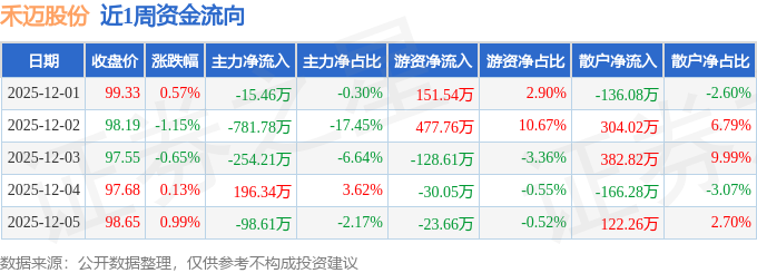资金流向数据方面,本周禾迈股份主力资金合计净流出953.72万元,游资资金合计净流入446.98万元,散户资金合计净流入506.74万元。本周资金流向一览见下表: