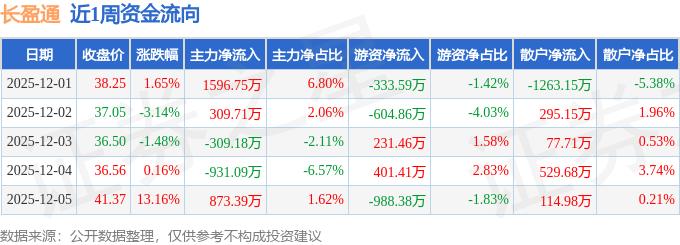 资金流向数据方面,本周长盈通主力资金合计净流入1539.58万元,游资资金合计净流出1293.96万元,散户资金合计净流出245.62万元。本周资金流向一览见下表: