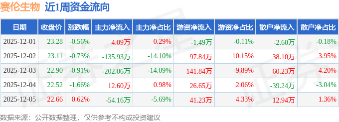 资金流向数据方面,本周赛伦生物主力资金合计净流出375.47万元,游资资金合计净流入306.05万元,散户资金合计净流入69.42万元。本周资金流向一览见下表: