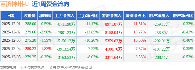 资金流向数据方面,本周百济神州主力资金合计净流出2.88亿元,游资资金合计净流入3.0亿元,散户资金合计净流出1114.21万元。本周资金流向一览见下表: