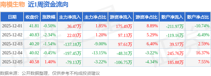 资金流向数据方面,本周南模生物主力资金合计净流出355.26万元,游资资金合计净流入215.17万元,散户资金合计净流入140.09万元。本周资金流向一览见下表:
