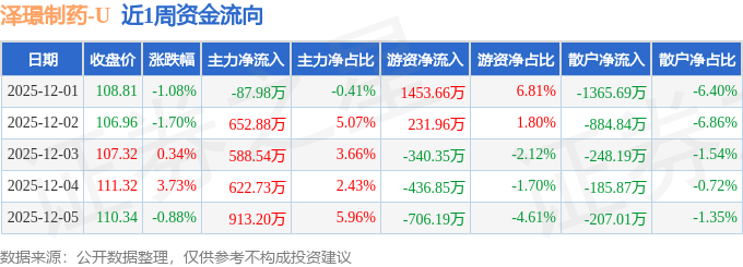资金流向数据方面,本周泽璟制药主力资金合计净流入2689.37万元,游资资金合计净流入202.23万元,散户资金合计净流出2891.6万元。本周资金流向一览见下表: