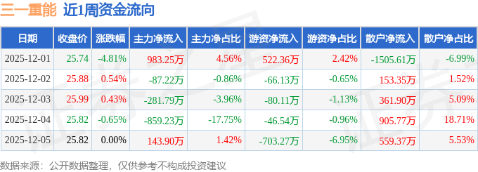 沪深股通持股方面,截止2025年12月5日收盘,三一重能沪股通持股数为261.08万股,占流通股比为139.0%。