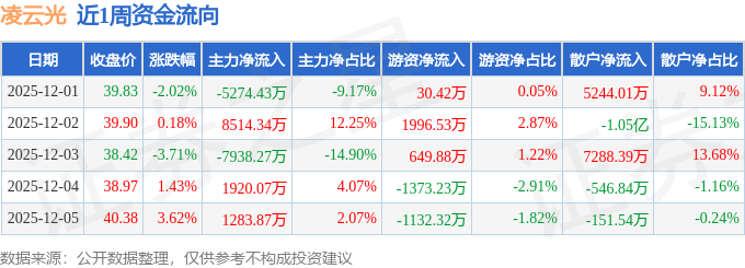 资金流向数据方面,本周凌云光主力资金合计净流出1494.43万元,游资资金合计净流入171.28万元,散户资金合计净流入1323.15万元。本周资金流向一览见下表: