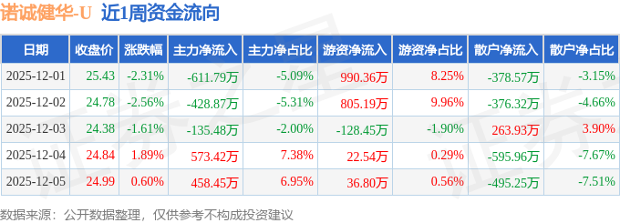 资金流向数据方面,本周诺诚健华主力资金合计净流出144.27万元,游资资金合计净流入1726.43万元,散户资金合计净流出1582.16万元。本周资金流向一览见下表: