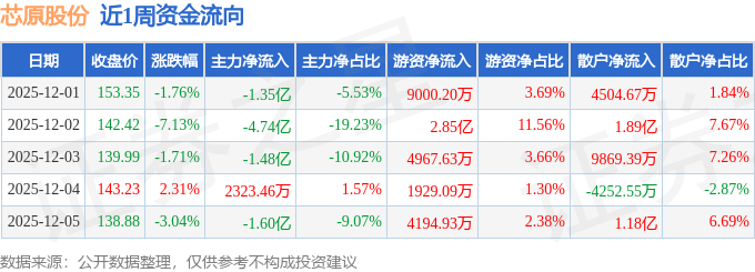 资金流向数据方面,本周芯原股份主力资金合计净流出8.94亿元,游资资金合计净流入4.86亿元,散户资金合计净流入4.08亿元。本周资金流向一览见下表: