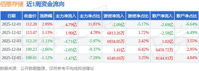 资金流向数据方面,本周佰维存储主力资金合计净流入1.45亿元,游资资金合计净流入1.34亿元,散户资金合计净流出2.8亿元。本周资金流向一览见下表:
