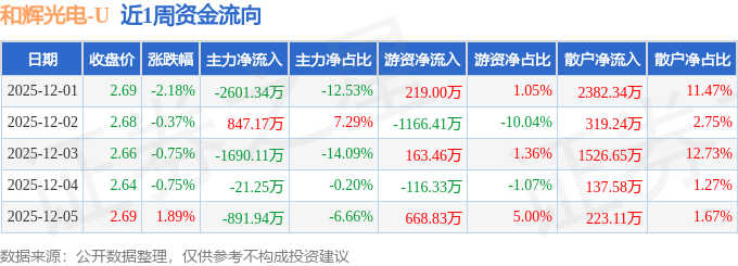 资金流向数据方面,本周和辉光电主力资金合计净流出4357.47万元,游资资金合计净流出231.46万元,散户资金合计净流入4588.92万元。本周资金流向一览见下表: