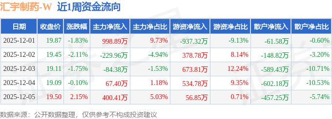 资金流向数据方面,本周汇宇制药主力资金合计净流入1152.35万元,游资资金合计净流入706.91万元,散户资金合计净流出1859.26万元。本周资金流向一览见下表: