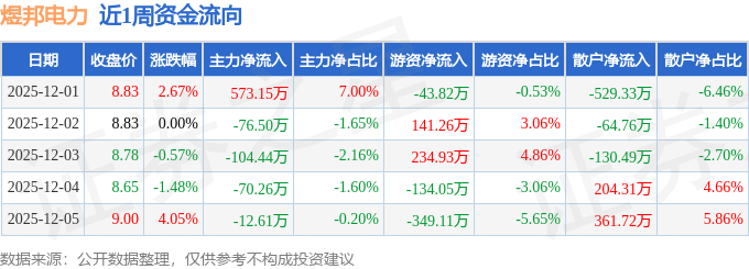 资金流向数据方面,本周煜邦电力主力资金合计净流入309.35万元,游资资金合计净流出150.79万元,散户资金合计净流出158.56万元。本周资金流向一览见下表: