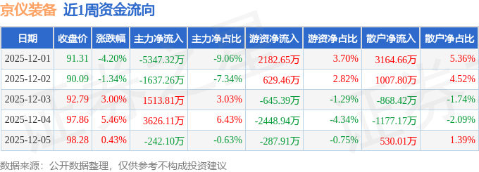 资金流向数据方面,本周京仪装备主力资金合计净流出2086.76万元,游资资金合计净流出570.13万元,散户资金合计净流入2656.89万元。本周资金流向一览见下表: