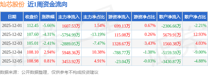 资金流向数据方面,本周灿芯股份主力资金合计净流入2325.77万元,游资资金合计净流入1331.07万元,散户资金合计净流出3656.83万元。本周资金流向一览见下表: