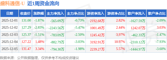 资金流向数据方面,本周盛科通信主力资金合计净流出5268.83万元,游资资金合计净流入9871.77万元,散户资金合计净流出4602.94万元。本周资金流向一览见下表: