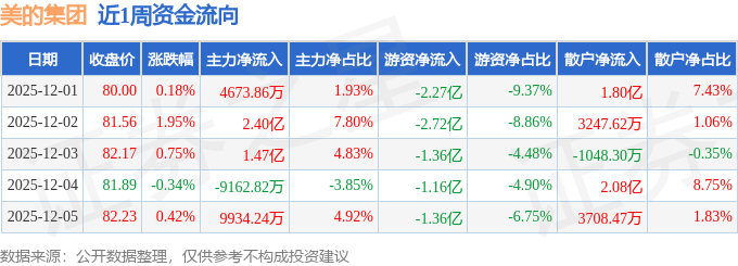 沪深股通持股方面,截止2025年12月5日收盘,美的集团深股通持股数为12.33亿股,占流通股比为1794.0%。